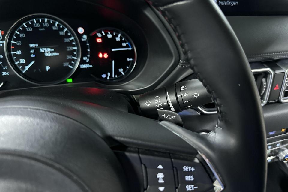 De geavanceerde technologie in deze Mazda is in staat om onderweg het verkeer om u heen te monitoren en er op te reageren. Zo hebt u als het ware een automatische co-piloot aan boord. Eyes on the road! Dat kan iedere seconde, dankzij de head-up display, die informatie projecteert op de voorruit. U rijdt ook veiliger omdat deze auto voor u de verkeersborden langs de weg kan lezen. De belangrijkste borden worden op uw instrumentarium geprojecteerd, zodat u ze niet kunt missen. Het Lane-keeping systeem let constant op en waarschuwt of corrigeert als u onoplettend over de lijnen van de rijstrook gaat. De auto is ook uitgerust met dodehoekdetectie, forward collision warning system, hill hold functie, brake assist, vermoeidheidsherkenning en bandenspanningcontrolesysteem.