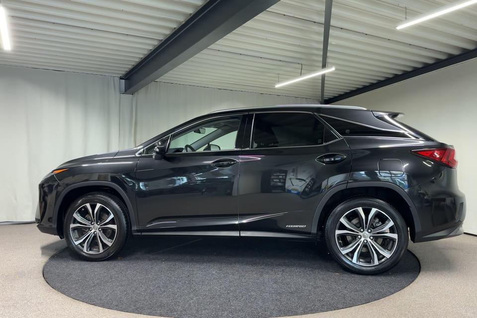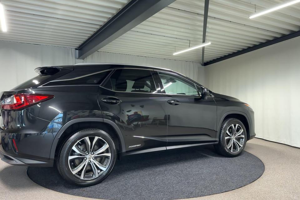 Ontspannen en zorgeloos autorijden, dat doet u met deze Lexus RX. Elektrisch rijden: zuinig, goedkoop en schoon. Maar soms net wat beperkt als het gaat om afstand. Daarom heeft deze hybride Lexus RX zowel een verbrandingsmotor als een elektromotor. Als dat geen perfecte combi is! Met zijn lederen bekleding is deze Lexus comfortabel en stijlvol. Doe maar luxe! Neem plaats in de verwarmbare voorstoelen en voel de weldaad in koude dagen. Het interieur baadt in daglicht dankzij het elektrisch bediende glazen panoramadak. De achterklep opent automatisch met een druk op de knop. Handig als u met volle handen staat. Aan een fijn opwarmertje in de kille dagen is gedacht, in de vorm van een verwarmd stuurwiel. Verder is de Lexus uitgerust met: 20 inch lichtmetalen velgen, LED koplampen, extra getint glas, in delen neerklapbare achterbank, LED-achterlichten en verstelbare lendensteunen.